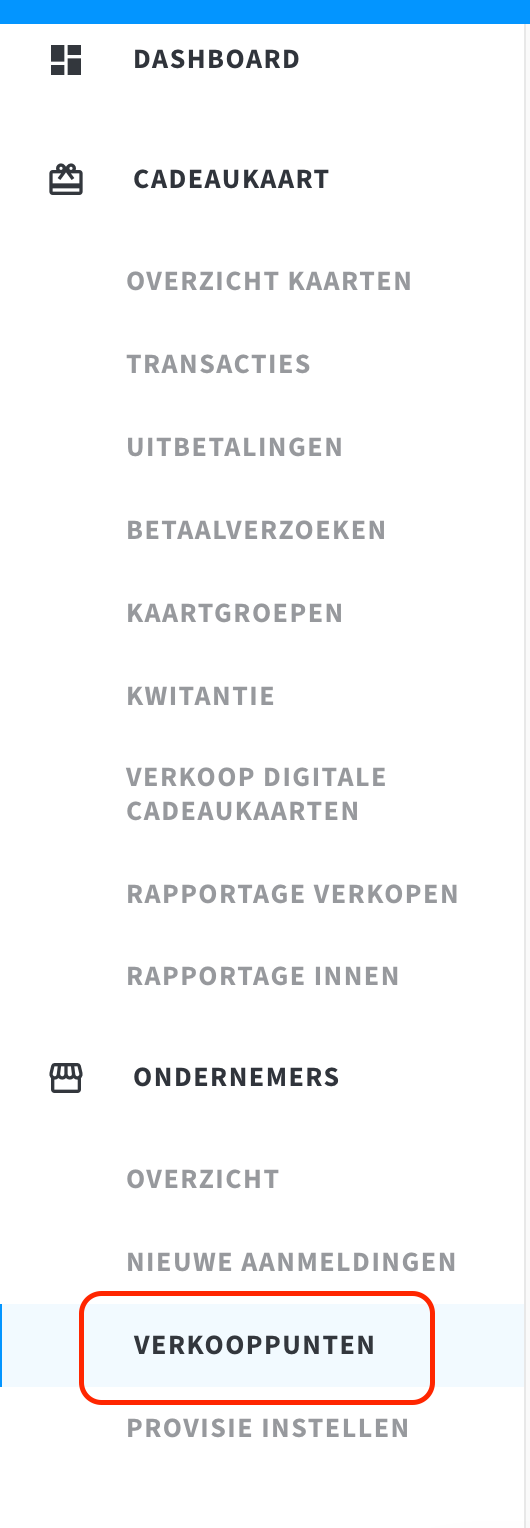 2. Ga links in het menu naar Ondernemers - Verkooppunten.