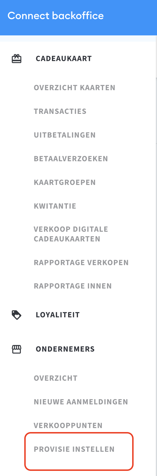 2. Ga links in het menu naar Ondernemers - Provisie instellen
