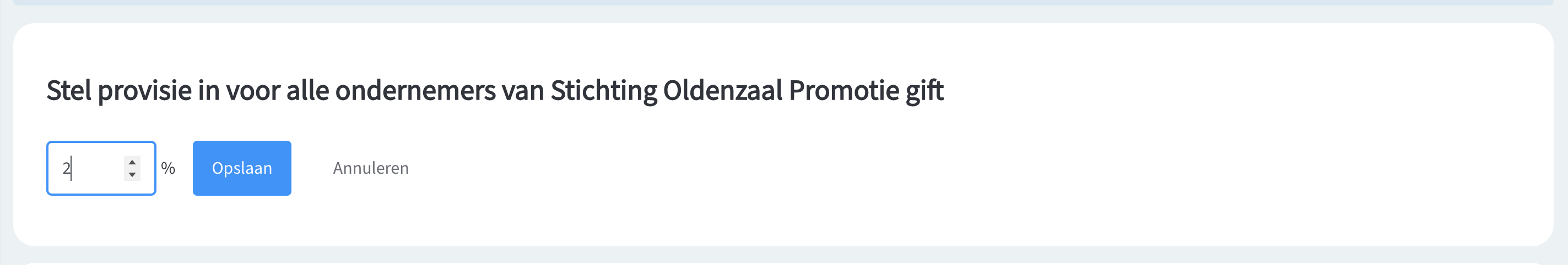 5. Vervolgens vul je het percentage in en klik je 'Opslaan'.