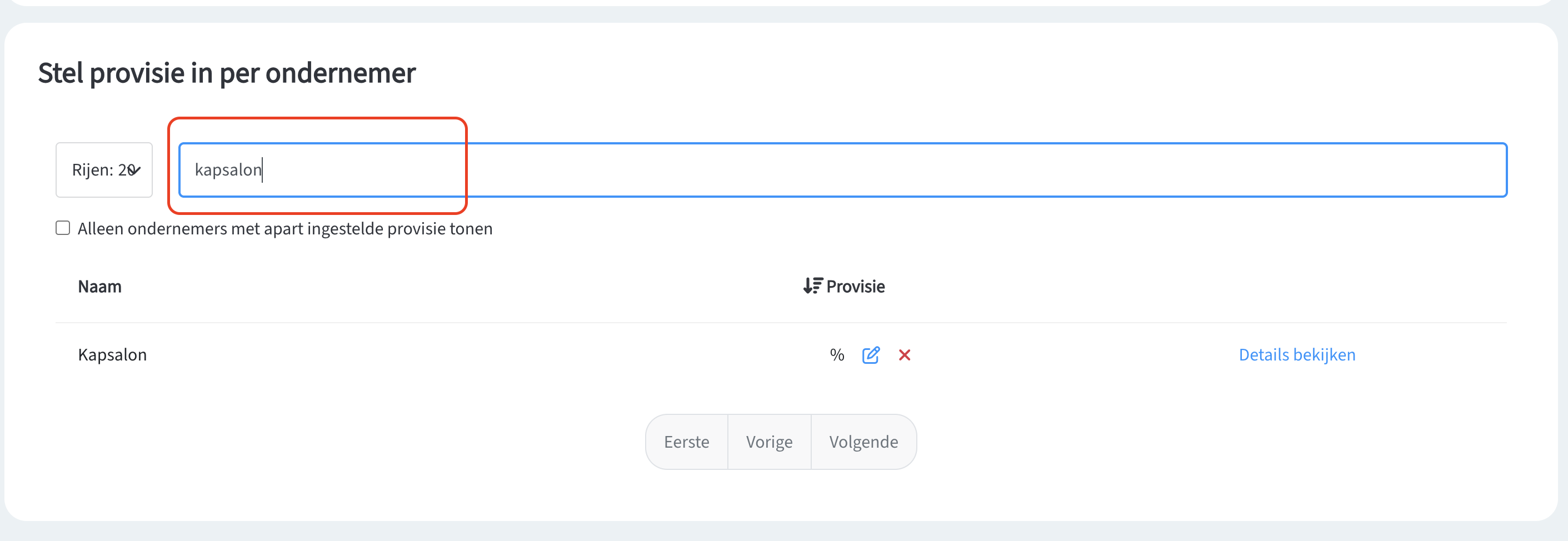 6. Als je ervoor kiest om de provisie apart in te stellen per ondernemer, zoek je de ondernemer in kwestie op.
