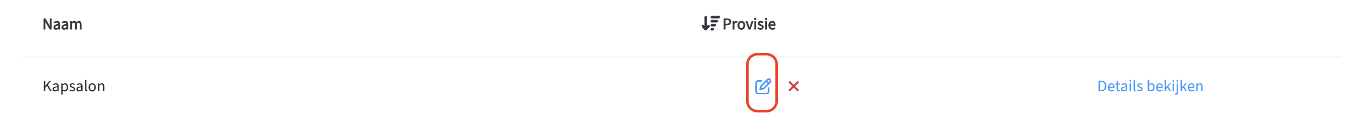 4. Als je ervoor kiest om de provisie algemeen in te stellen op het programma voor alle ondernemers, dan klik je op het potlood-icoontje