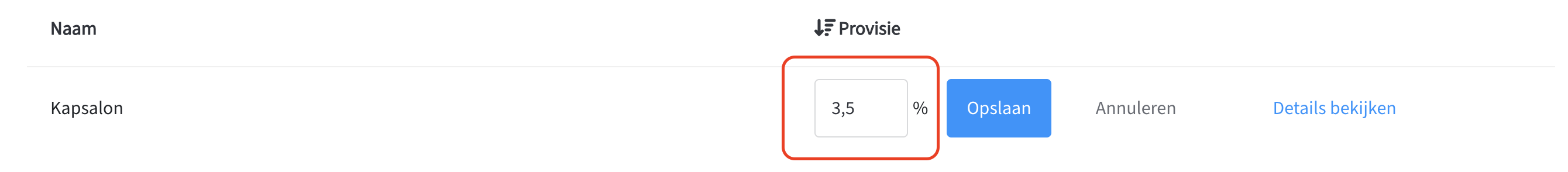 8. Vul het percentage in en klik op 'Opslaan'.